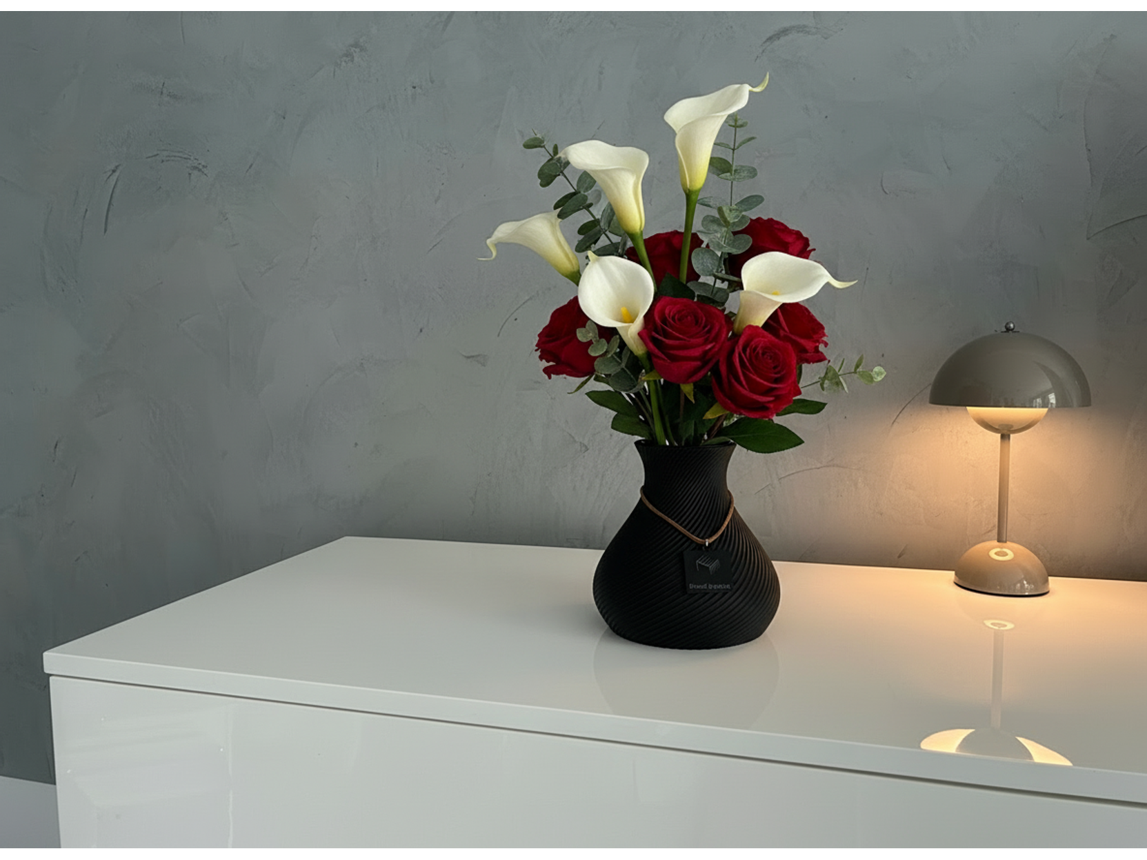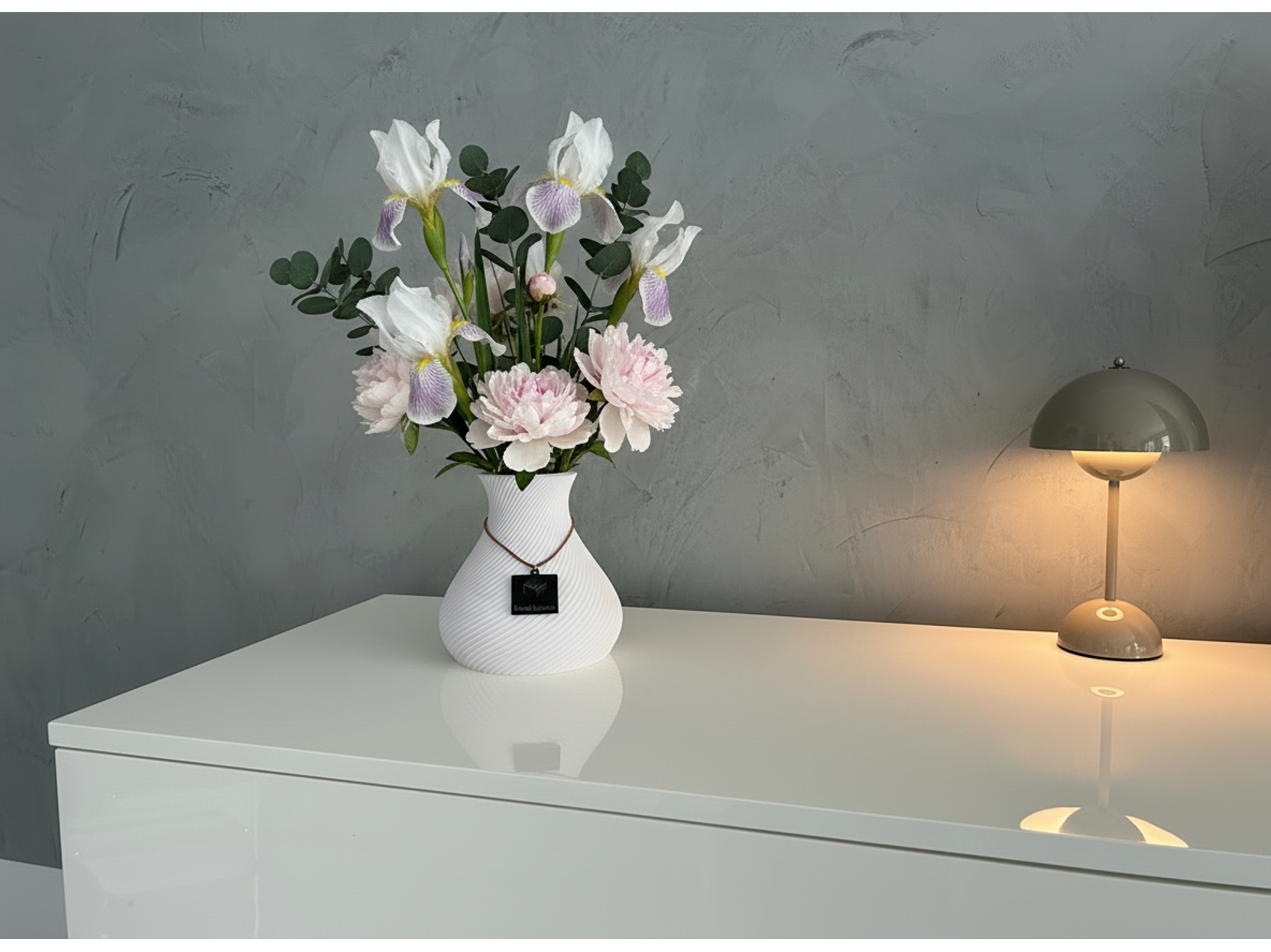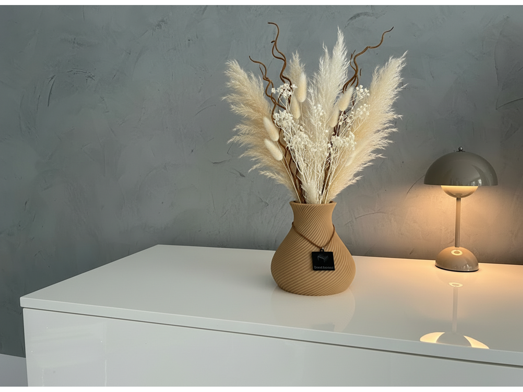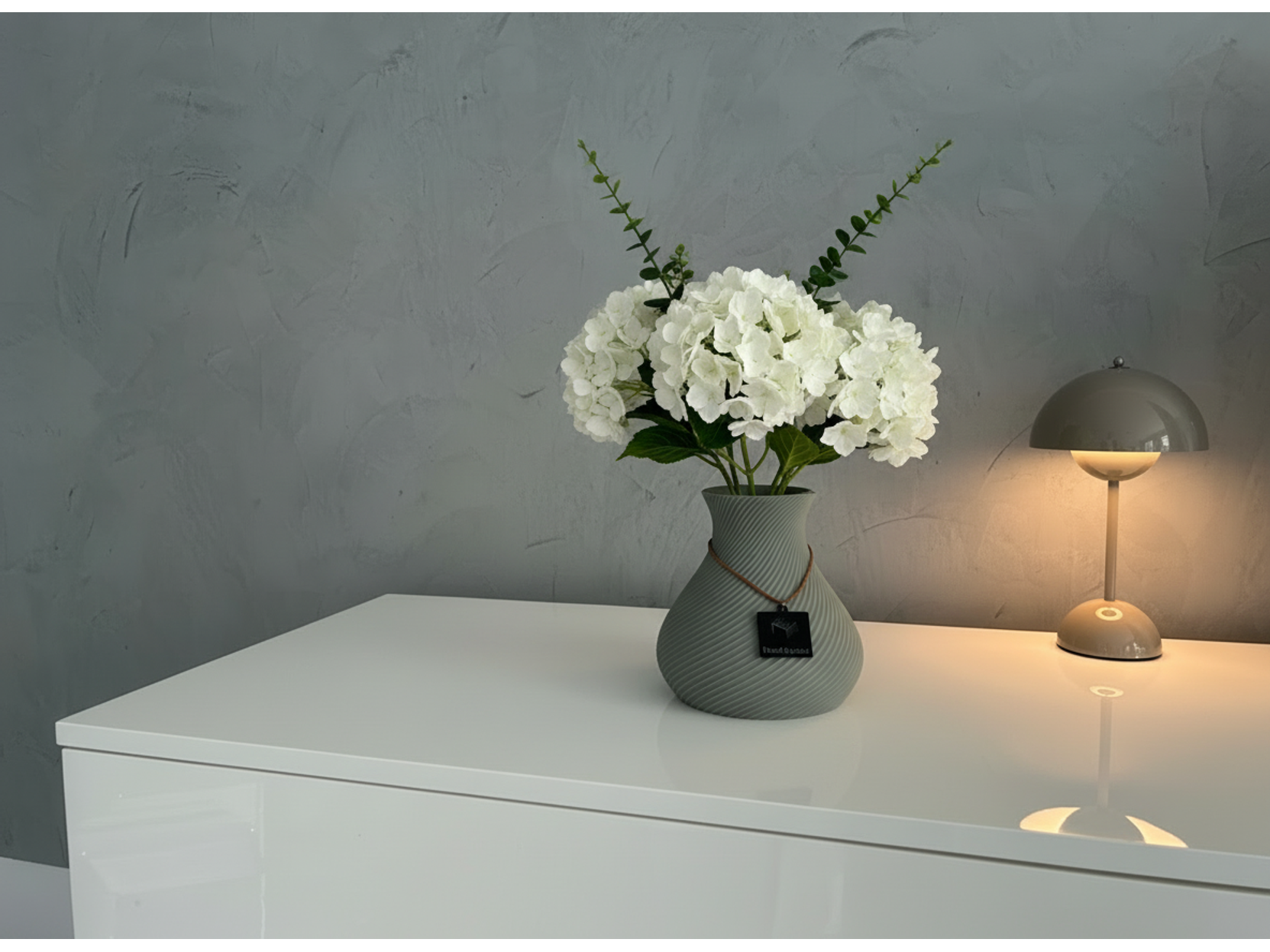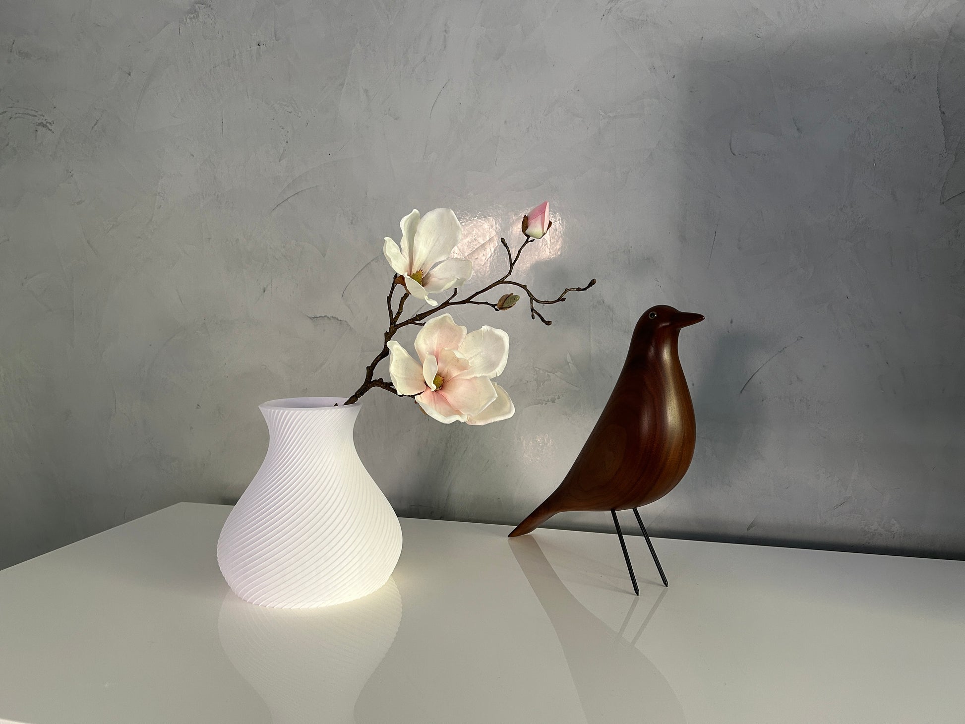 Mit ihrer harmonischen Silhouette und der dezenten Spiraloptik bringt diese Vase schlichte Eleganz in jeden Raum. Perfekt für kleine Blumenarrangements oder einzelne Zweige – ein Designstück, das moderne Leichtigkeit ausstrahlt.