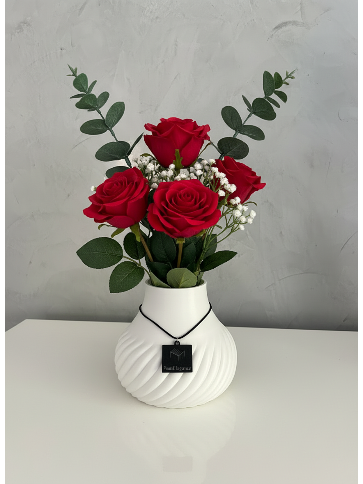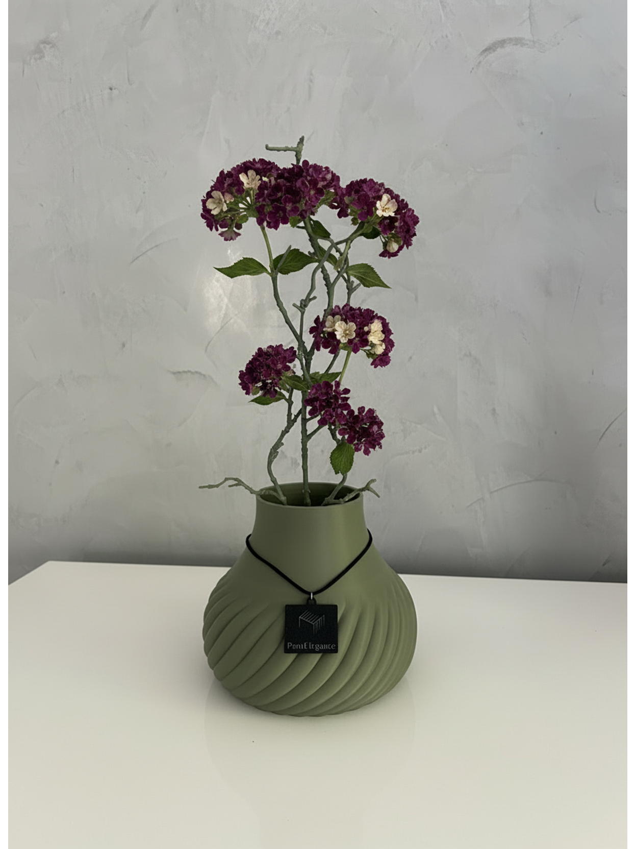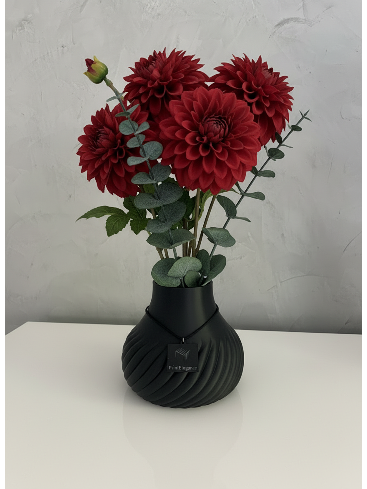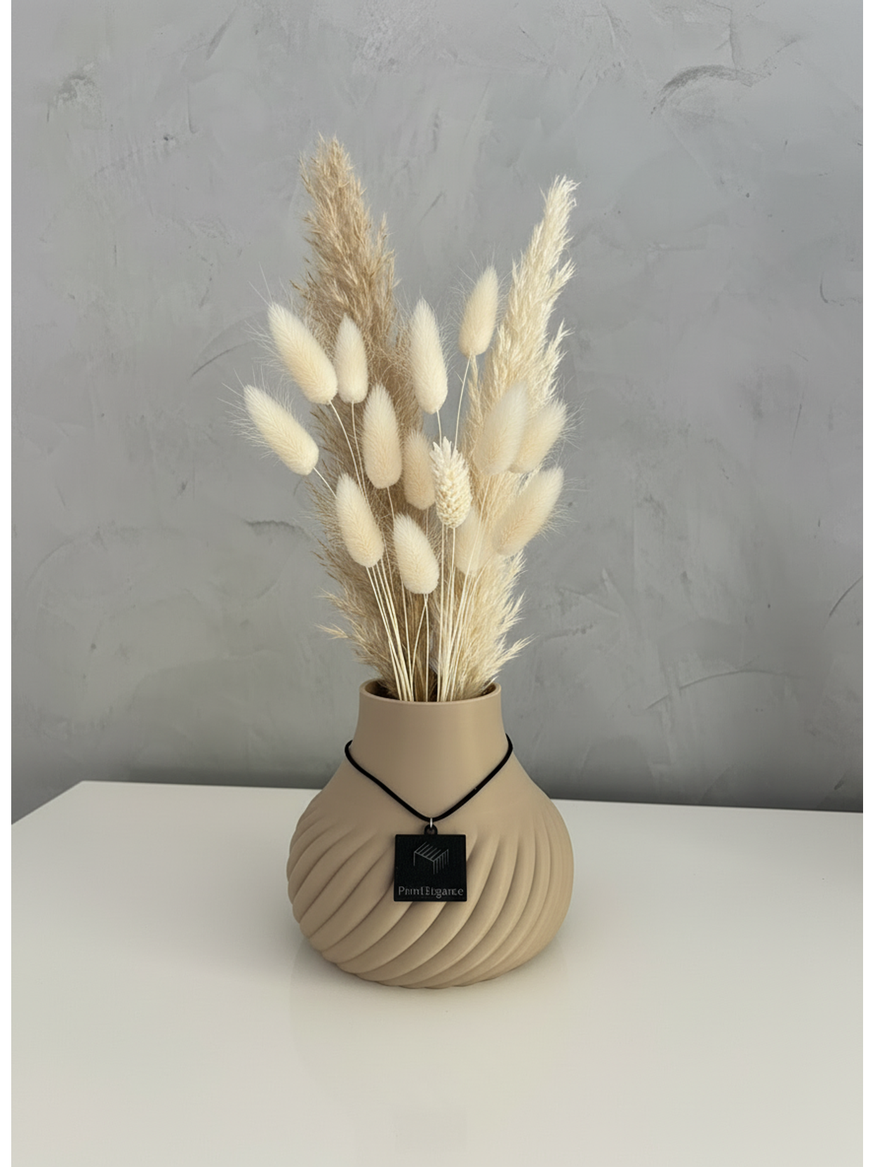 Die bauchige Basis und der schmale Hals verleihen dieser Vase eine klare Silhouette mit sanfter Ausstrahlung. Die feine Spiralstruktur bringt Bewegung ins Design und macht sie zu einem stilvollen Akzent in jedem Raum. Ob in verschiedenen Farben oder zu unterschiedlichen Anlässen – sie fügt sich mühelos ein und setzt Blumen und Zweige elegant in Szene.